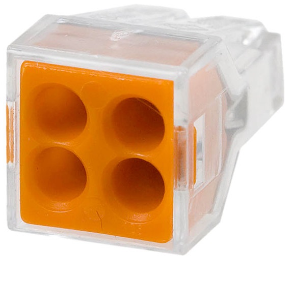 Клеммник wago 773-324 4х2,5мм2 без пасты - представляет собой клемму с механизмом втычного свойства из сверхлегкого пластика без токопроводящей пасты. Предназначена для соединения 4 провода сечением по 2,5мм. Используется при проведении электромонтажных работ любой сложности, подключение осветительного оборудования.