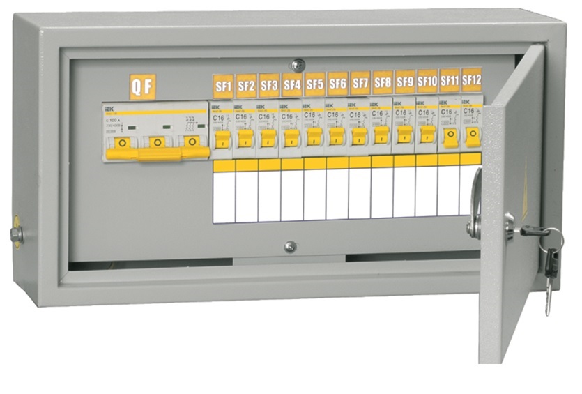 - Отходящие линии: автоматические выключатели 12 шт, номиналом от 6А до 40А