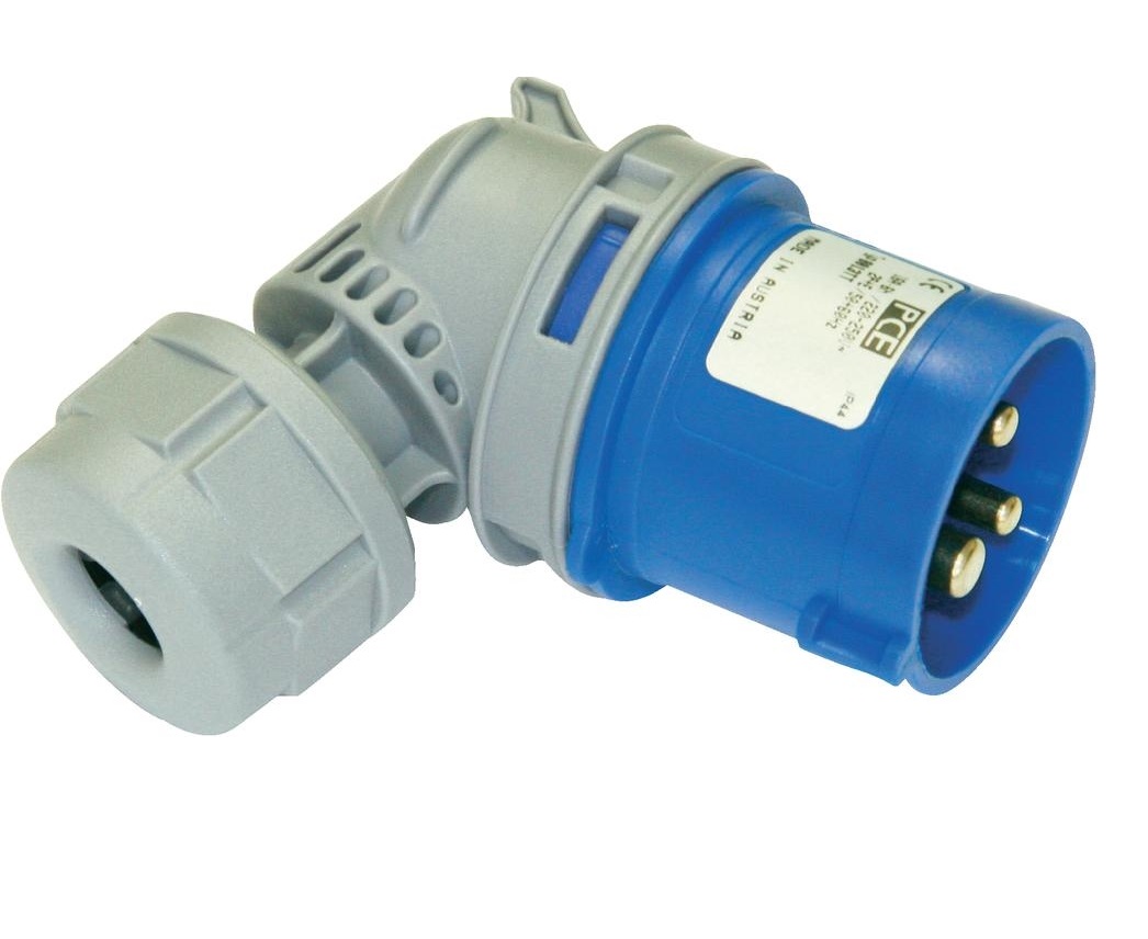 Вилка кабельная угловая 16А 230V 1P+N+E IP44