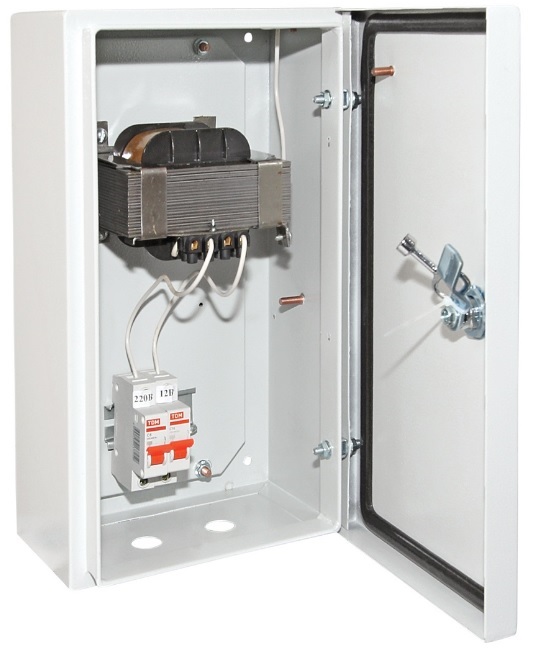 ЯТП 0,63-380/24 IP54 - это ящик с понижающим трансформатором на мощность 0,63 кВт позволяет понизить напряжение сети с 380В до 24В. Степень защиты IP54 размещение в помещениях с повышенным уровнем влажности. Таким образом ящик ЯТП можно назвать преобразователем напряжения.